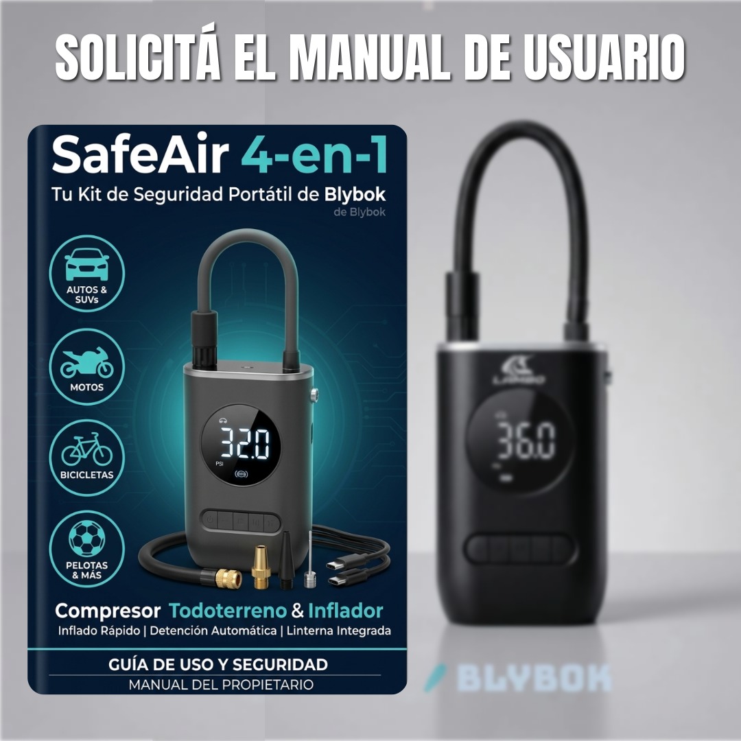 Olvidate de las preocupaciones en el camino. El Compresor SafeAir® es la solución inteligente: inflado fácil, rápido y seguro en cualquier lugar.